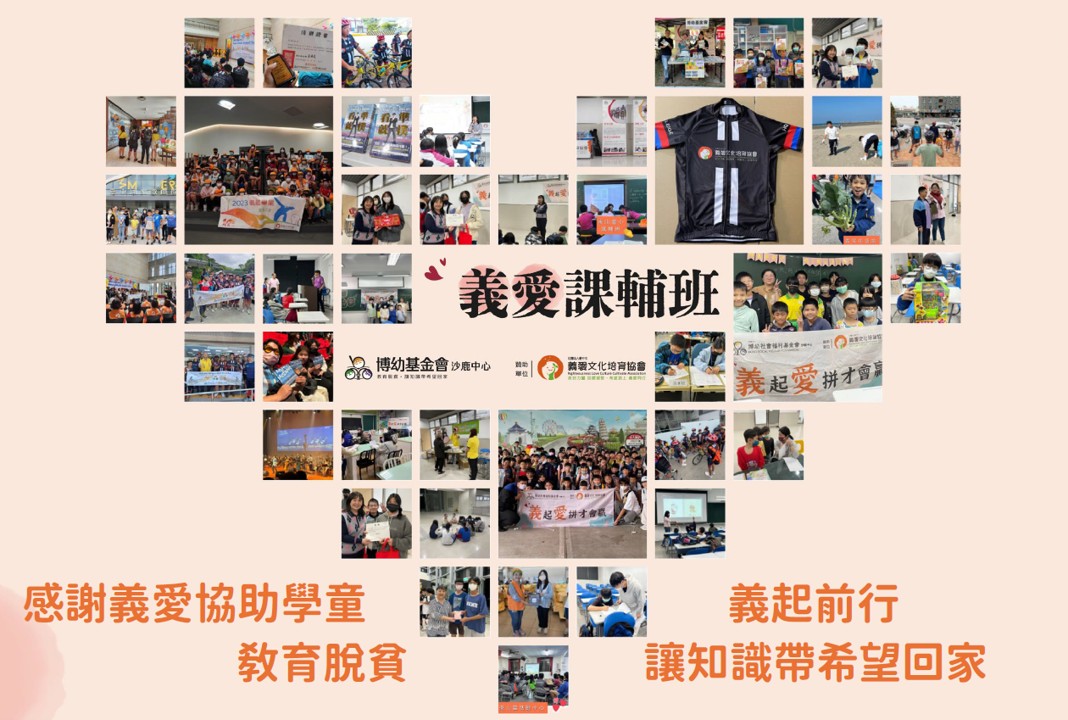 義愛深知教育的重要性,攜手博幼基金會沙鹿中心,共同為臺中市沙鹿區、龍井區、梧棲區、清水區的國小、國中、高中學童提供課後輔導服務,將教育理念深根進入社區中,確保每一位孩子都能獲得基本學習能力與及生活關懷,並且持續追蹤升學與就業狀況,讓孩子有信心可以進到下一個階段發展,找到安穩工作,擁有穩定的經濟基礎,協助家庭脫離貧窮。